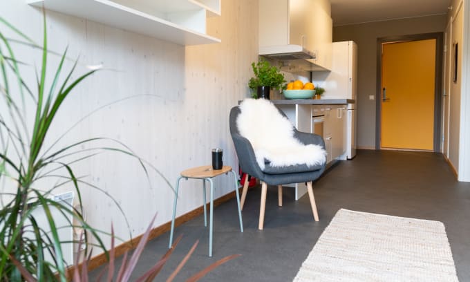 Størrelse og inventar kan variere med enheten du får tildelt. Bildene er kun eksempler på boligtypen og kan avvike fra enheten du får.