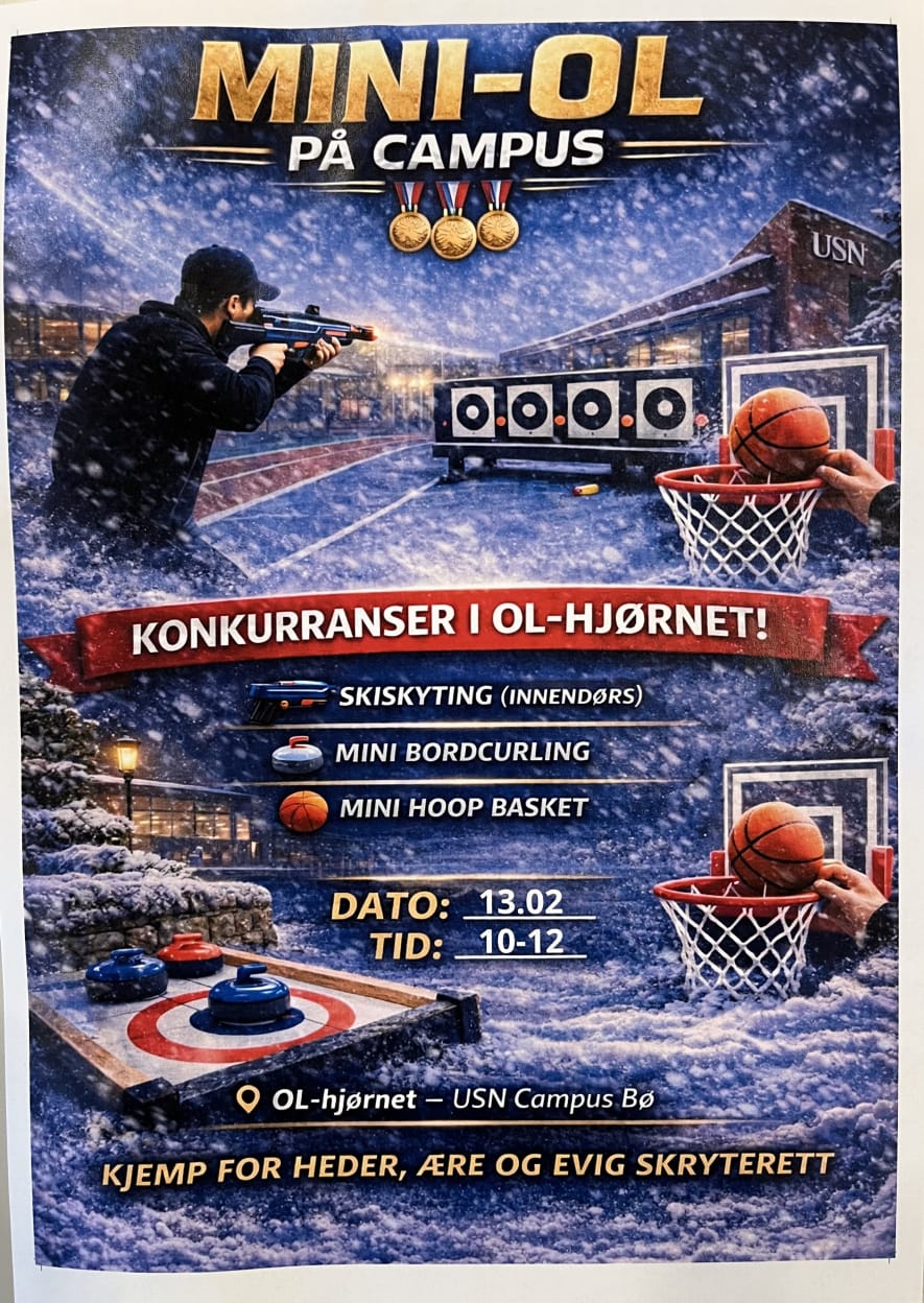 Come and join the mini Olympics! You can try biathlon, table curling, and basketball. Fight for honor, glory, and great prizes!!
