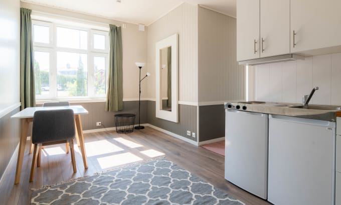 Internet via cable, Internet via WiFi, Fixed supplement for electricity, Subject to errors in inventory. In addition, some inventory may apply to common areas and not the individual unit., My keycard: Digital key in app or on My page at ssn.no, All keys and key cards must be delivered by 10 am on the last day of the contract.
