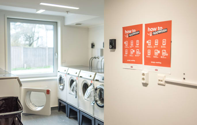 Kaldnes Brygge student accommodation has a laundry with washing machines and tumble driers on the ground floor.