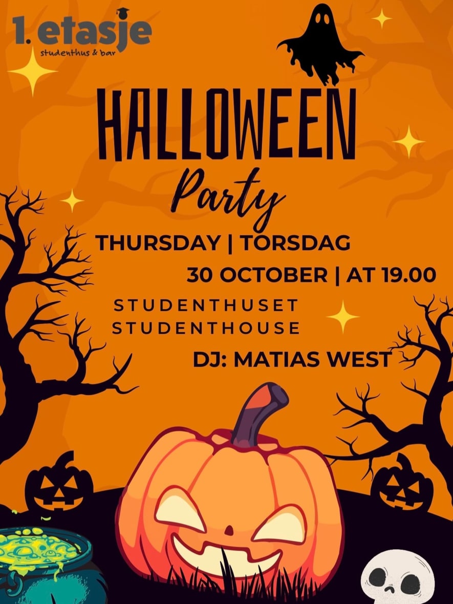 HĂĽper dere har begynt ĂĽ tenke pĂĽ kostyme, fordi vi i studentsamfunnet inviterer dere til Halloween party!!