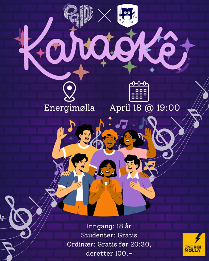 SiK og Kongsberg Pride arrangerer karaoke på Energimølla lørdag 18. april kl. 19:00