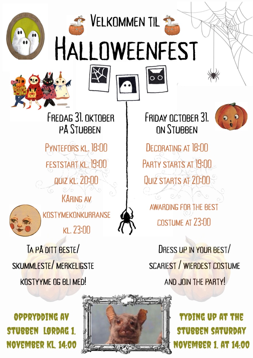 Hovedarrangementet starter kl. 19:00, det blir quiz kl. 20:00 og kåring av beste kostyme kl. 23:00